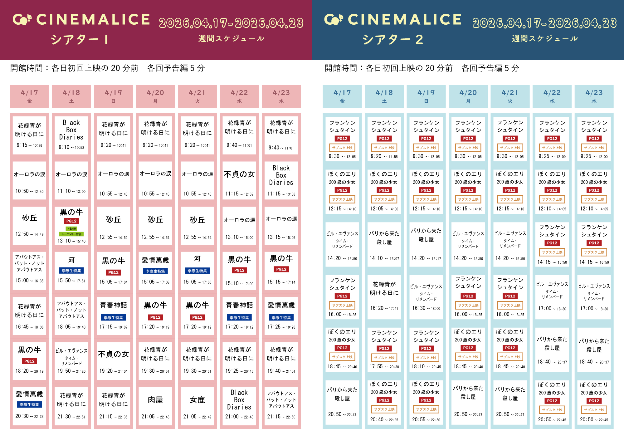 上映スケジュール(2026/4/17~2026/4/23)