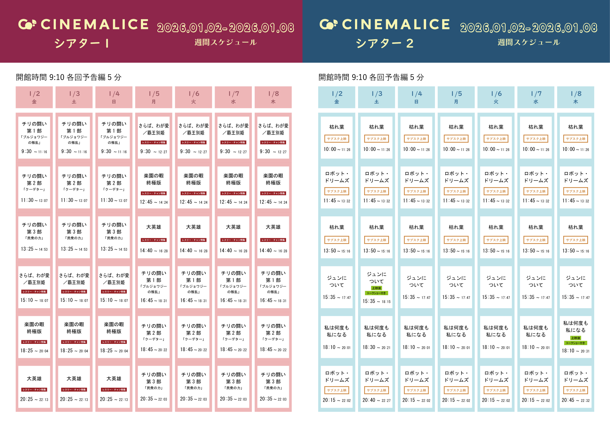 1月2日~8日の上映スケジュールです。